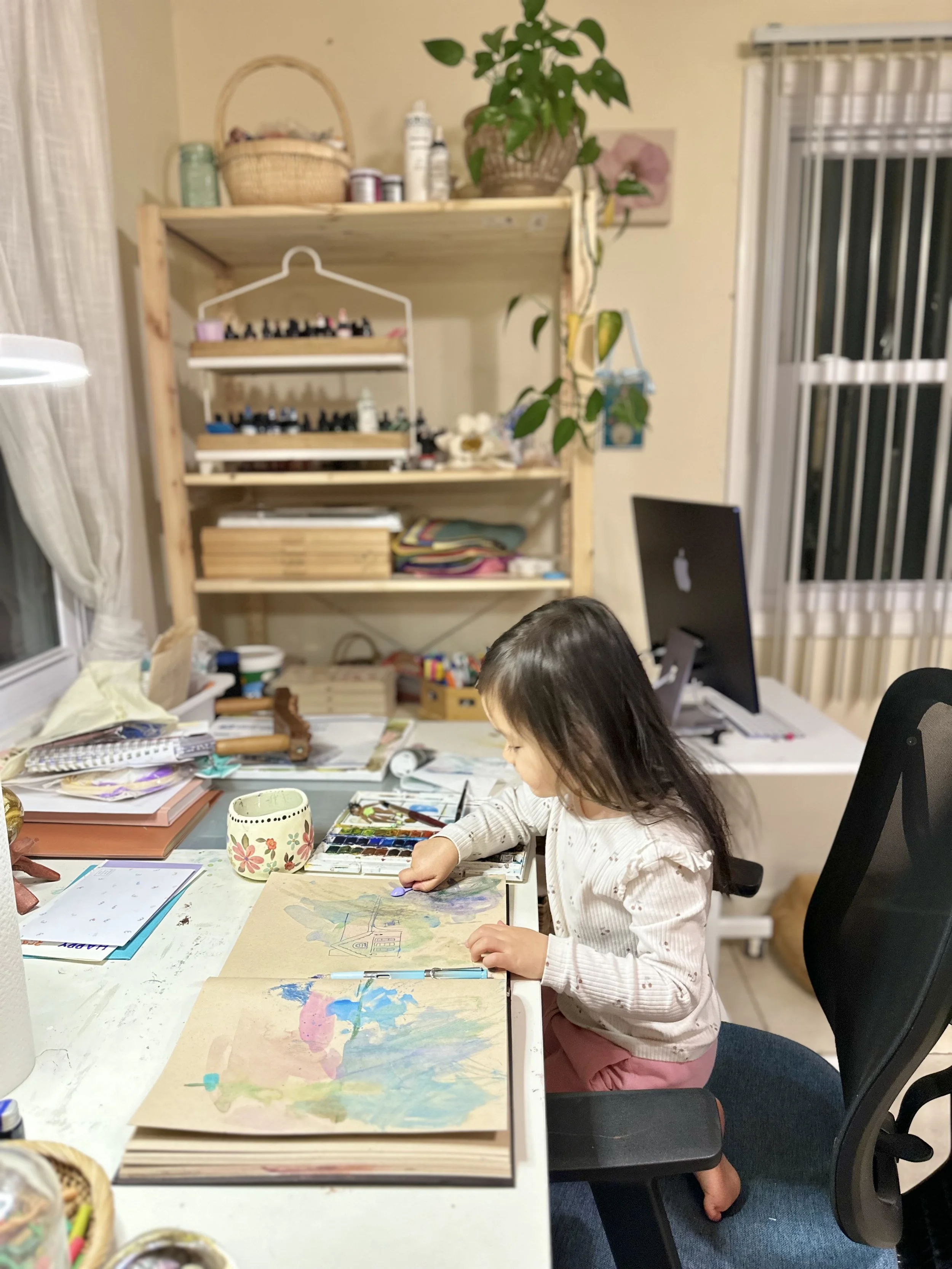 Bella Art Pod operates in small, consistent cohort pods that meet once a week over an eight-week season. Session take place on Tuesdays from 11:30AM—1:00PM, following a predictable rhythm — arrival, settling in, creative exploration, and closing — so children know what to expect and can relax into the experience. Activities are thoughtfully prepared and gently facilitated, allowing children to engage at their own pace. Some may jump right in, other may observe before participating; both are welcomed and supported.